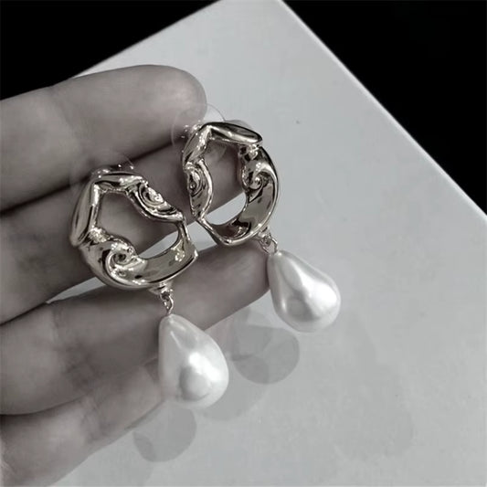 Irregular Metal Hanging Baroque Pearl Female Earrings Lava Pearl High Pearl Female Earrings